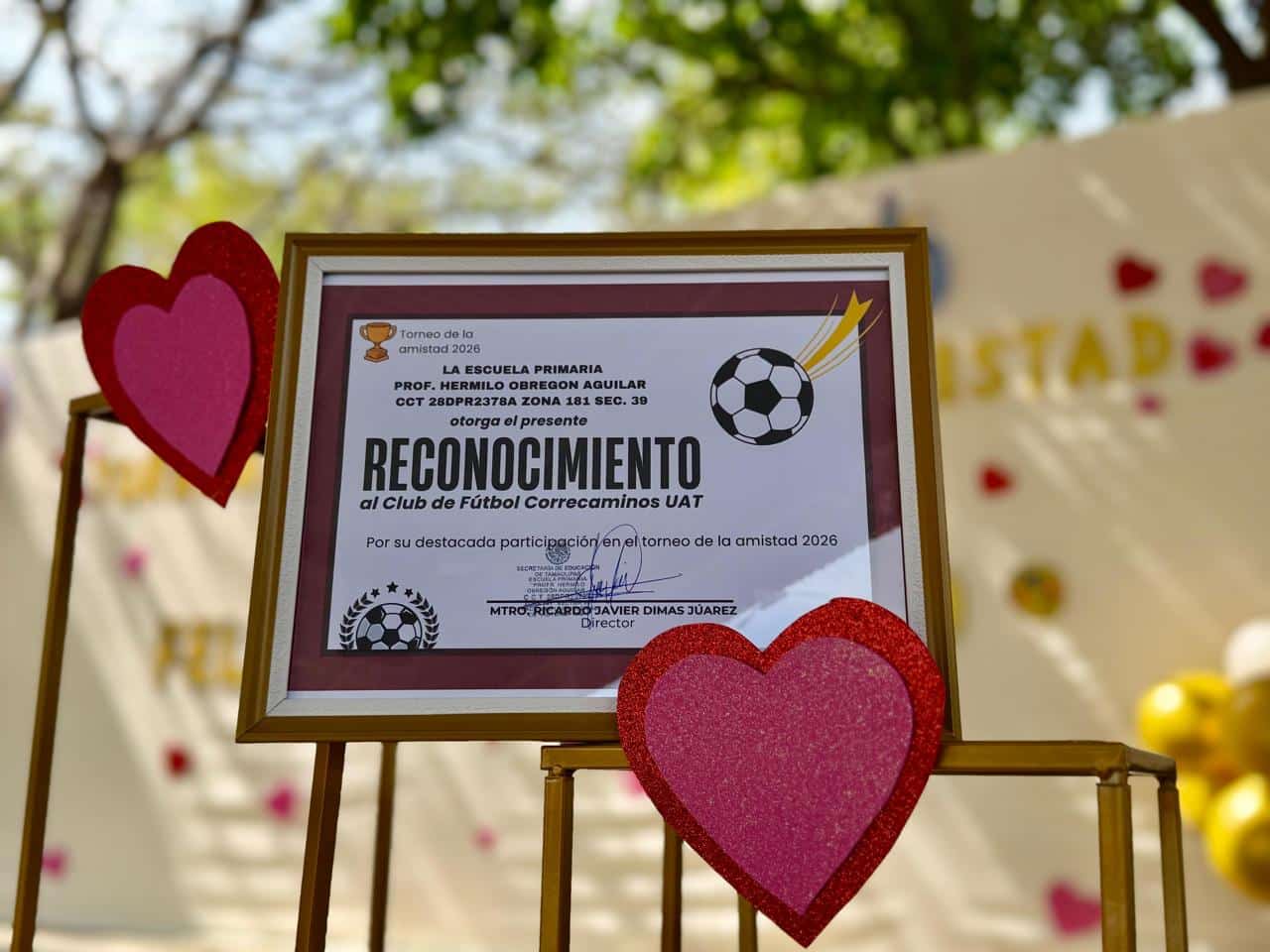 El Director del plantel, Maestro Ricardo Javier Dimas Juárez realizó la entrega de un reconocimiento por parte de la escuela primaria al Club Correcaminos, por su participación en dicho torneo.